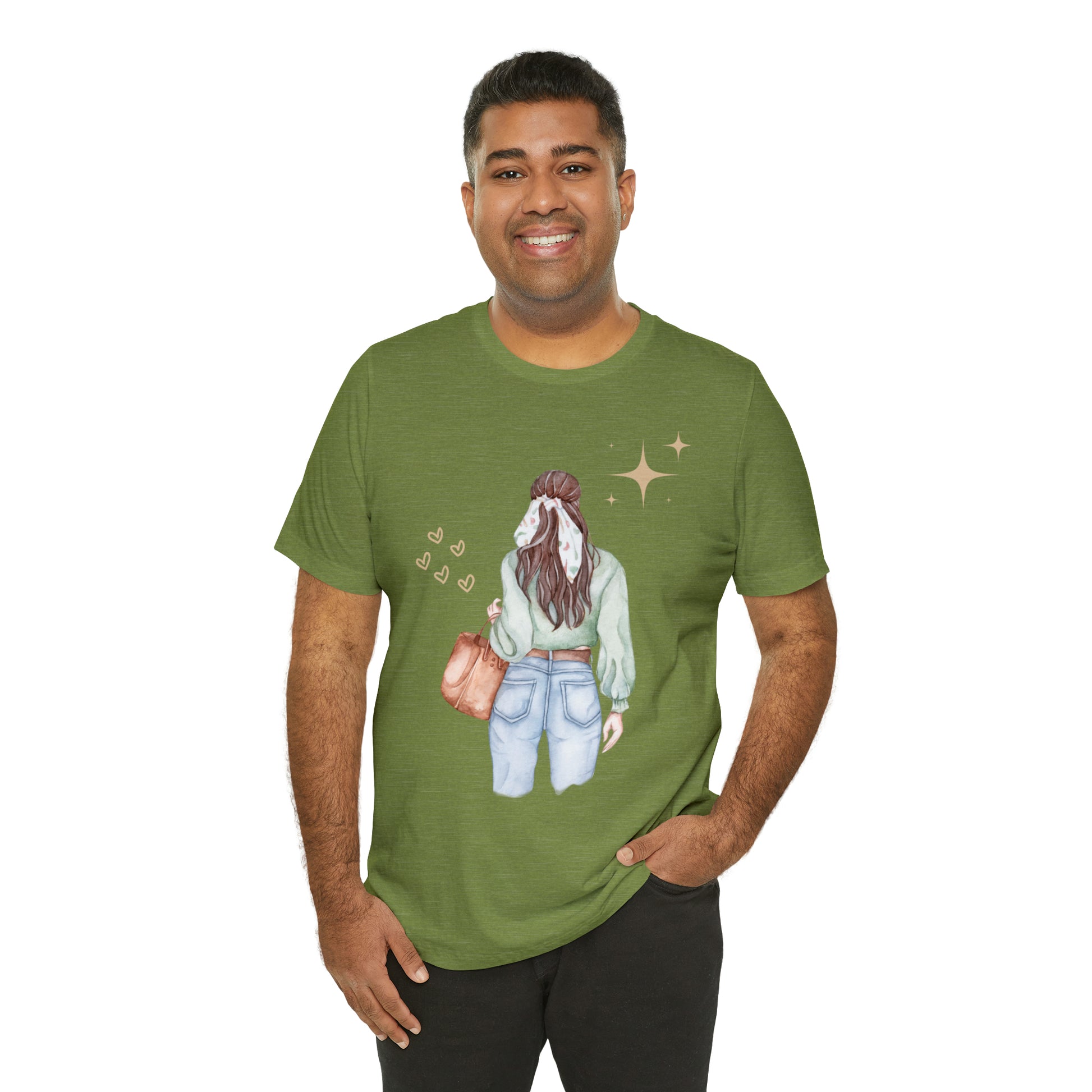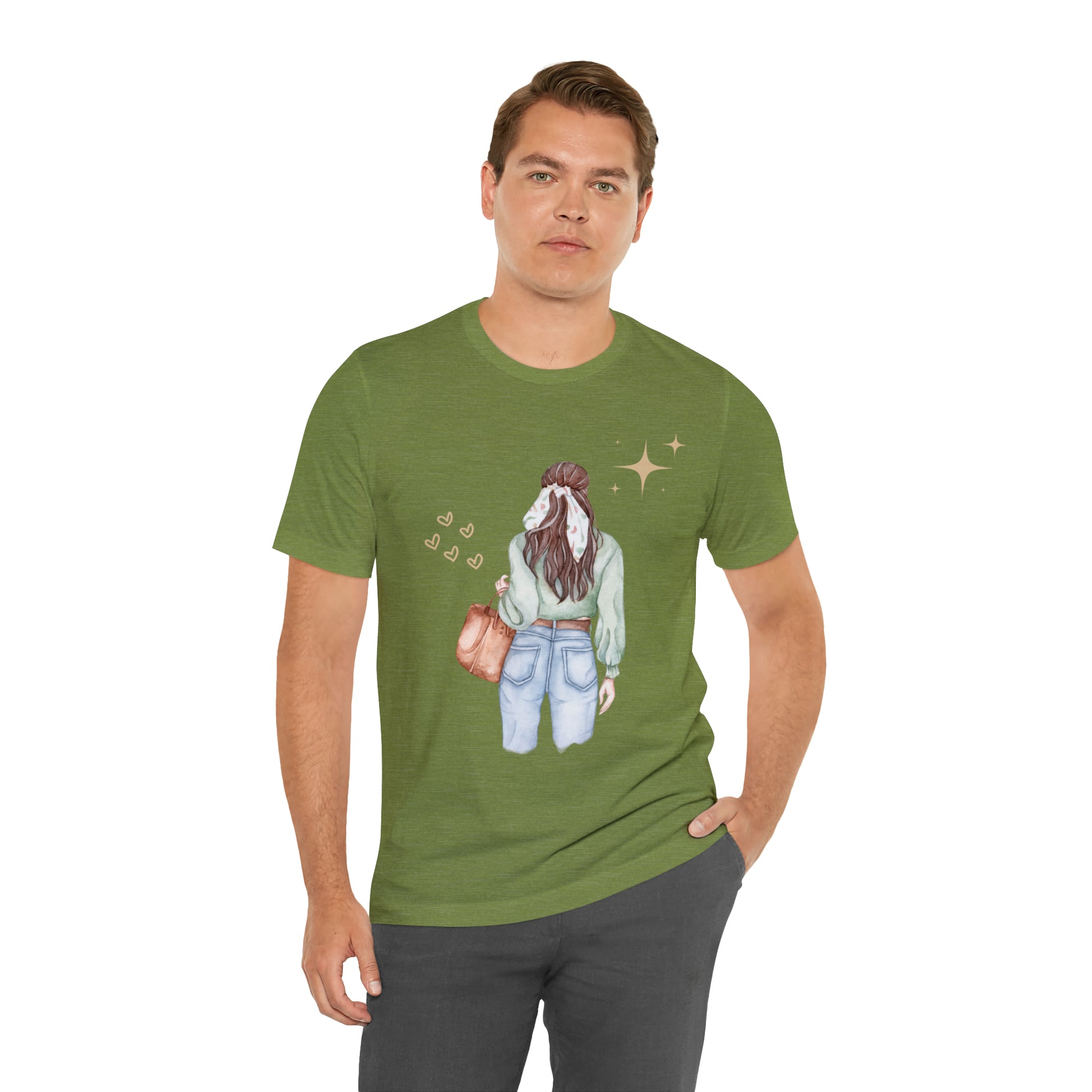 This classic unisex jersey short sleeve tee fits like a well-loved favorite. Soft cotton and quality print make users fall in love with it over and over again. These t-shirts have-ribbed knit collars to bolster shaping. The shoulders have taping for better fit over time. Dual side seams hold the garment's shape for longer.